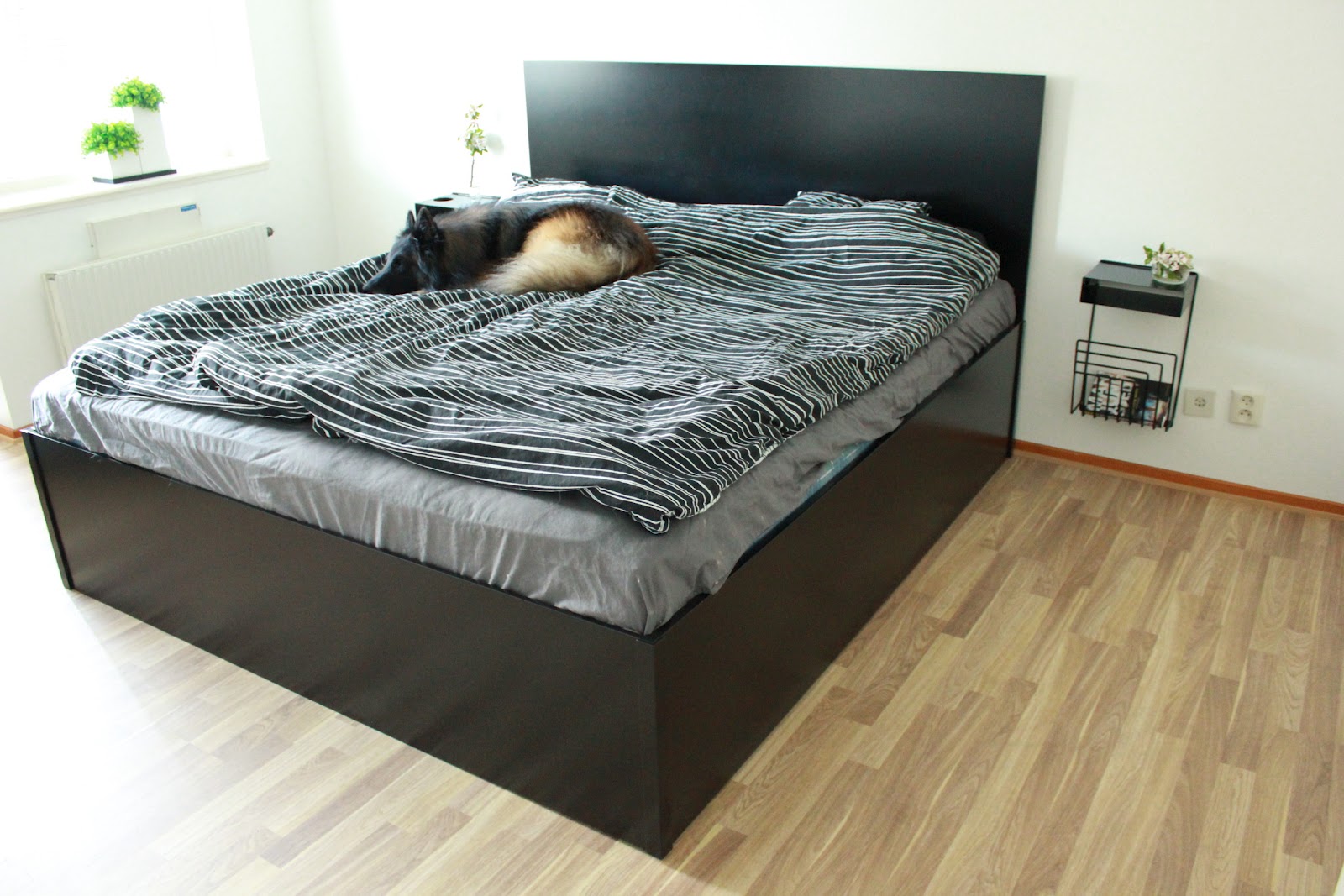 Sovrummet är färdigmålat, det nya golvet ligger där, sängborden är på väg och lika så sängen.